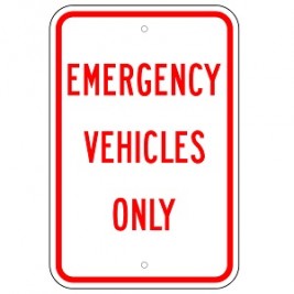 No Parking - Emergency Vehicles Only 12"x18" Metal Sign Pre-punched 3/8" Mounting Holes Individual Sign