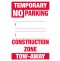 Temporary No Parking Sign - Construction Zone